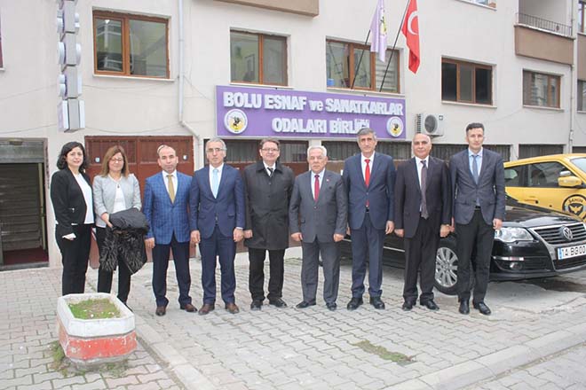 Bolu Defterdarı Zekai DEDE ve arkadaşlarını Birlik Başkanı Tahir GAYRET, Birlik Genel Sekreteri Selhan ŞİMŞEK ve Birlik Personeli karşıladılar. Defterdar Zekai DEDE Vergi Haftası nedeniyle bu ziyaretlerini gerçekleştirdiklerini belirterek Birlik Başkanı Tahir GAYRET’e çiçek verdi. Birlik Başkanı Defterdar ve arkadaşlarına ziyaretlerinden dolayı duyduğu memnuniyeti dile getirerek çiçeği bütün esnaflar adına aldığını söyleyerek teşekkür etti. Ziyaret esnaf ve sanatkârların sorunları ve bunların çözüm yolları hakkında istişare ile son buldu.