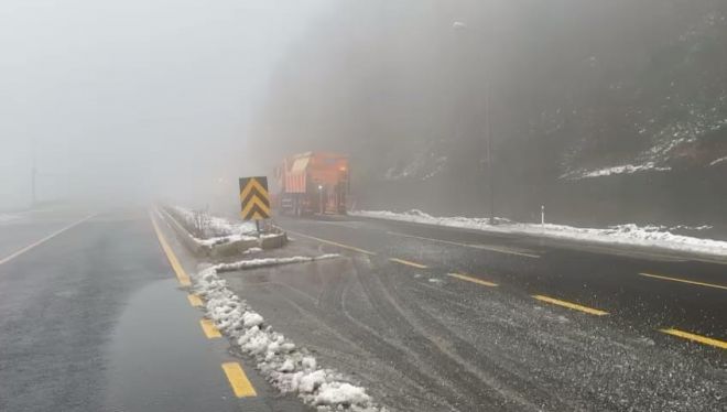 Bolu Dağı'nın D-100 kara yolu geçişinde dün gece saatlerinde etkili olan yağmur yerini kar yağışına bıraktı. Gece boyu aralıklarla devam eden kar, bu sabah saatlerinde de etkisini sürdürdü. Kar kalınlığının 5 santimetreye ulaştığı D-100 kara yolu Bolu Dağı kesimi ve D-100 kara yolunun Yumrukaya, Abant Kavşağı, Elmalık, Bakacak, Seymenler, Karanlıkdere, Bıçkıyanı, Sarıçökek bölgelerinde sürücüler dikkatli bir şekilde ilerliyor. Kar örtüsü bulunmayan yolda ulaşım kolaylıkla sağlanıyor.