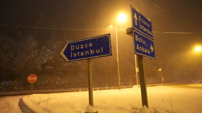 Bolu’da, akşam saatlerinde kentin yüksek kesimlerinde ve Türkiye’nin en önemli geçiş noktalarından biri olan D-100 karayolu ve Anadolu Otoyolu’nun Bolu Dağı geçişinde kar yağışı başladı. Etkisini artıran kar sebebiyle yeşil alanlar beyaz örtüyle kaplandı. Kar yağışının etkili olduğu ve kar kalınlığının 10 santimetreye ulaştığı D-100 karayolu Bolu Dağı kesimi ve D-100 karayolunun Yumrukaya, Abant Kavşağı, Elmalık, Bakacak, Seymenler, Karanlıkdere, Bıçkıyanı, Sarıçökek bölgelerinde sürücüler dikkatli bir şekilde ilerliyor. Karayolları ekipleri kar yağışının yolu kapatmaması için çalışmalarını sürdürüyor. Bölgede gece saatlerine kadar kar yağışı bekleniyor. Kar yağışı nedeniyle ulaşımda herhangi bir aksama yaşanmadı.