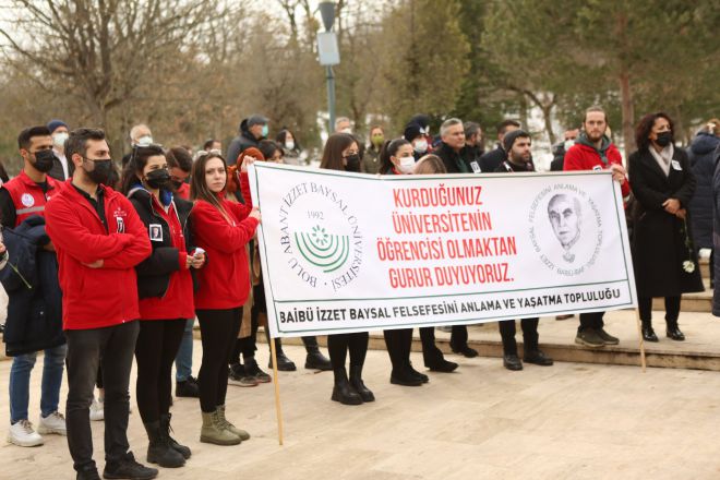 İzzet Baysal Felsefesini Anlama ve Yaşatma Topluluğu öncülüğünde BAİBÜ öğrencileri, merkez ve ilçelerden gelen öğrenciler, akademik ve idari personel ile yurttaşlar, merhum İzzet Baysal’ın aziz hatırasına saygı yürüyüşü gerçekleştirdiler. Gölköy’deki İzzet Baysal Kültür Merkezi önünden başlayan yürüyüşün sonunda merhum İzzet Baysal’ın kabri başında anma töreni yapıldı. Törene, İzzet Baysal Vakfı Başkanı Ahmet Baysal, Bolu Valisi Ahmet Ümit, Bolu Belediye Başkanı Tanju Özcan, CHP Bolu il başkanı Kazım Karsu, Ak Parti Bolu il başkanı Suat Güner, İYİ Parti Bolu il başkanı Ahmet Örnekbaş, BAİBÜ Rektörü Prof. Dr. Mustafa Alişarlı başta olmak üzere ilimizin önde gelen isimleri ve vatandaşlar katıldı.
