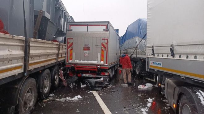 Kaza, saat 17.00 sıralarında TEM Otoyolu Batı Gişeleri ile Doğu Gişeleri arasında meydana geldi. Edinilen bilgiye göre, otoyolun Batı ile Doğu gişeleri arasında sürücüsünün ismi öğrenilemeyen 44 AE 888 plakalı tır, kar yağışının etkisiyle kayganlaşan yolda kontrolden çıkarak yolu kapattı. Daha sonra aynı yönde seyreden aralarında yolcu otobüsü, tır, kamyon, minibüs ve otomobilin bulunduğu 58 araç zincirleme kazaya karıştı. Kaza sebebiyle yolun Ankara istikameti trafiğe kapatıldı. Aynı noktada İstanbul istikametinde de maddi hasarlı kaza meydana gelmesi üzerine İstanbul istikametinde trafik 2 şeritten kontrollü olarak sağlandı. Bölgeye çok sayıda itfaiye, sağlık, polis, jandarma, AFAD ve UMKE ekipleri sevk edildi. 58 aracın karıştığı zincirleme trafik kazasında 2'si ağır 10 kişi yaralandı. Yararlılar, sağlık ekiplerinin olay yerindeki ilk müdahalesinin ardından hastaneye kaldırıldı. Öte yandan, AFAD ekipleri iftar saati yolda kalan sürücülere erzak dağıttı.
