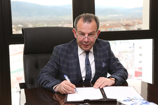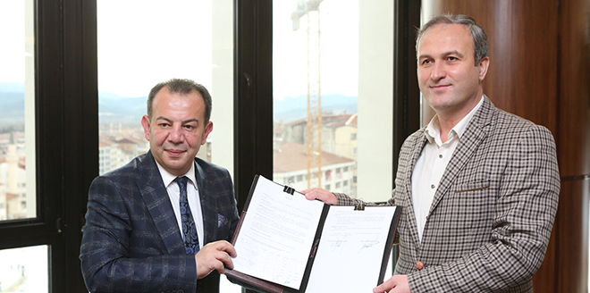 Bolu Belediyesi ile Mudurnu Belediyesi arasında geçtiğimiz yıl başlayan işbirliği bu yıl da devam ediyor. İki belediye arasında bu yıl da 33 bin m2 parke taşı alımı için protokol imzalandı. Bolu Belediyesi Başkanlık makamında bir araya gelen Bolu Belediye Başkanı Tanju Özcan ve Mudurnu Belediye Başkanı Tanju Özcan iş birliği protokolünü imzaladılar.