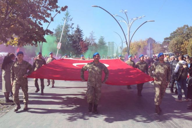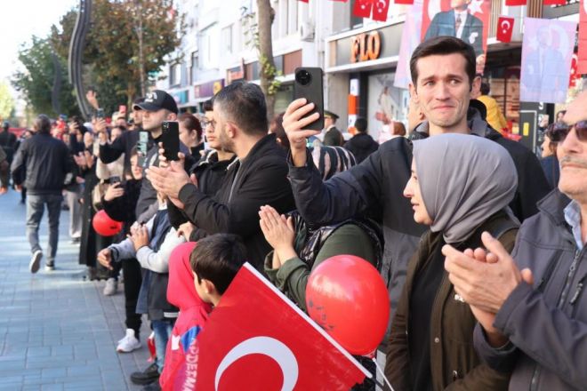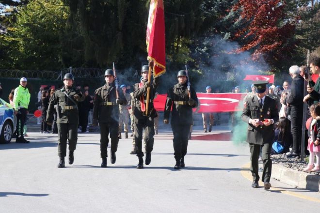 Bolu’da, Cumhuriyet Bayramı’nın 101’inci yıldönümü coşkuyla kutlanıyor. Öğrencilerin kente yaptığı gösteriler ilgiyle izlendi. Etkinliklerin ardından ilk önce 101 genç, 101 metrelik dev Türk bayrağı ile İzzet Baysal Caddesi’nde yürüdü.