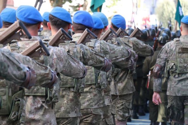 Törende, iç güvenlik harekatlarındaki üstün başarılarından dolayı Türkiye’nin çift sancaklı tek tugayı olan Bolu 2’inci Komando Tugay Komutanlığındaki komandoların geçişi renkli görüntülere sahne oldu. Sis bombaları altında yürüyen mavi bereliler, törene katılan vatandaşlar tarafından dakikalarca alkışlandı. Komandoların marşlarla geçişi sırasında vatandaşlar da ellerinde Türk bayraklarıyla askerlere sevgi gösterilerinde bulundu. Mavi berelilerin marşlarla geçişi caddeyi inletti.