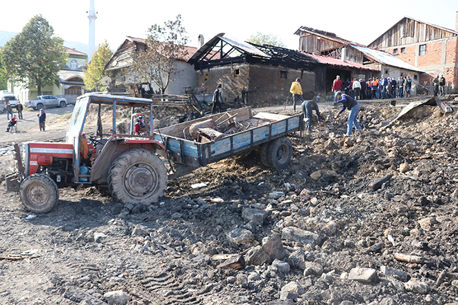 Yangının söndürülmesinin ardından sabah saatlerinde bölgeye gelen ekipler tarafından hasar tespit ve yanan evlerin enkazlarının kaldırılma çalışmaları başlatıldı. Enkaz kaldırma çalışmalarına katılan vatandaşlar küle dönen evlerinden kalan hurdaları toplayarak satmak için traktörlerle götürdü.