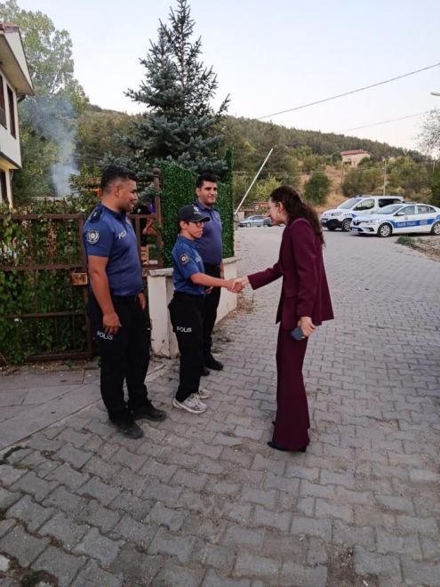 Bolu'nun Mudurnu ilçesinde yaşayan özel birey 14 yaşındaki Efe Abduş'un polis olma hayali, Mudurnu Kaymakamı Ceyda Durmaz'ın sürpriziyle gerçeğe dönüştü. Mudurnu İlçe Emniyet Müdürlüğü'nde düzenlenen sürpriz programda Efe'ye, kendisi için hazırlanan polis üniforması giydirildi. Üniformasını giyen Efe'nin apoletleri, Kaymakam Ceyda Durmaz ve İlçe Emniyet Müdür Vekili Başkomiser Hasan Tokgöz tarafından takıldı. Efe'nin ailesi oğullarına bu mutluluğu yaşatan kurumlara teşekkür etti.Etkinlik, hatıra fotoğrafı çekimiyle sona erdi.