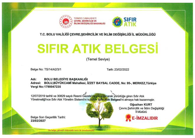 Bolu, Çevre ve Şehircilik Bakanlığı tarafından verilen belgeyle Türkiye’nin en temiz şehirleri arasına girdi. Kaynakta ayrıştırma konusunda da örnek gösterilen kentte, geçtiğimiz yıl 791 ton 168 kilogram atık toplanarak bertaraf edildi. Konuyla ilgili açıklamalarda bulunan bolu Belediye Başkanı Tanju Özcan, "Bakanlığın bize verdiği belgeyle Bolu’nun Türkiye’nin en temiz şehirlerinden biri olduğu net olarak ortaya konuldu. Temizlik işleri sadece çöplerin toplanmasından ibaret değil. Kaynakta ayrıştırmada şuan Türkiye’nin en iyi belediyesi biziz. Çevre ve Şehircilik Bakanlığı da kaynakta ayrıştırma uygulamalarında örnek olarak sadece bolu Belediyesi’ni gösteriyor. Bu da bizim ne kadar doğru bir yolda olduğumuzu ve örnek çalışmalar yaptığımızı gösteriyor" dedi.