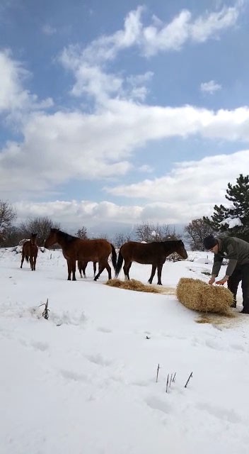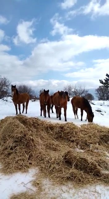 Bolu’da yoğun kar yağışı sonrası yüksek kesimlerde kar kalınlığı 1 metreye yaklaştı. Kar yağışıyla birlikte ormanlık alanlarda yiyecek bulmakta zorlanan yaban hayvanları ve At Yaylası’ndaki yılkı atlarının beslenmesi için Doğa Koruma ve Milli Parklar ekipleri çalışma yaptı. Ulaşımın zorlu olduğu alanlara arazi araçlarıyla çıkan ekipler yılkı atları için besi yemi ve saman bıraktı. Ekiplerin yiyecek bıraktığını fark eden atlar gruplar halinde bölgeye gelerek beslendi. Yılkı atlarının beslenmesinin ardından ekipler farklı bölgelerde geyik, karaca ve kuşlar için de yemleme çalışması gerçekleştirdi.