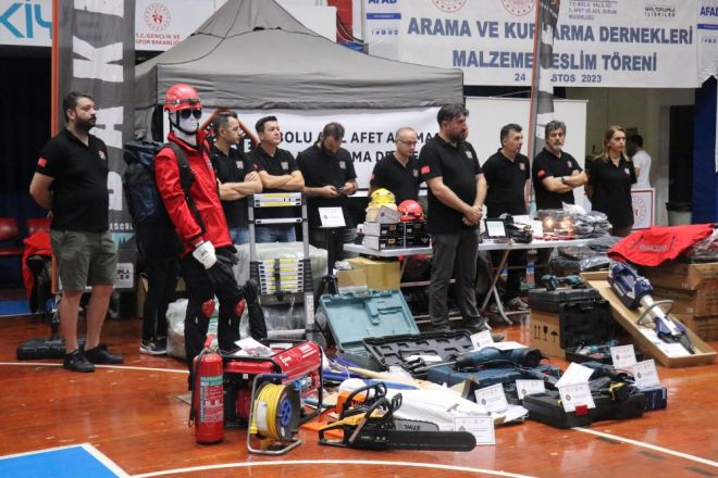 17 Temmuz Spor Salonu’nda düzenlenen malzeme teslim törenine Bolu Valisi Erkan Kılıç, AFAD Sivil Toplumla İlişkiler ve Rehabilitasyon Daire Başkanı Abdulkadir Tercan ile daire müdürleri ve arama kurtarma ekipleri katıldı.