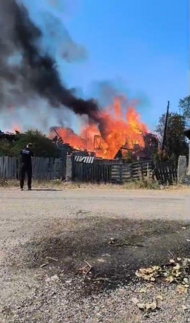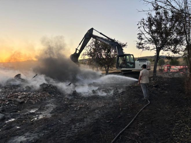 Yangının anızda başladığını söyleyen köy muhtarı Adem Kanbur ise, "Tarladan çıkmış, anız yanarak rüzgarın etkisiyle evlere sıçramış. İki ev, bir konteyner ev, iki samanlık ve iki ahır yandı. Allah devletimize zeval vermesin. Ekipler şu an yangını kontrol altına aldı" ifadelerini kullandı.