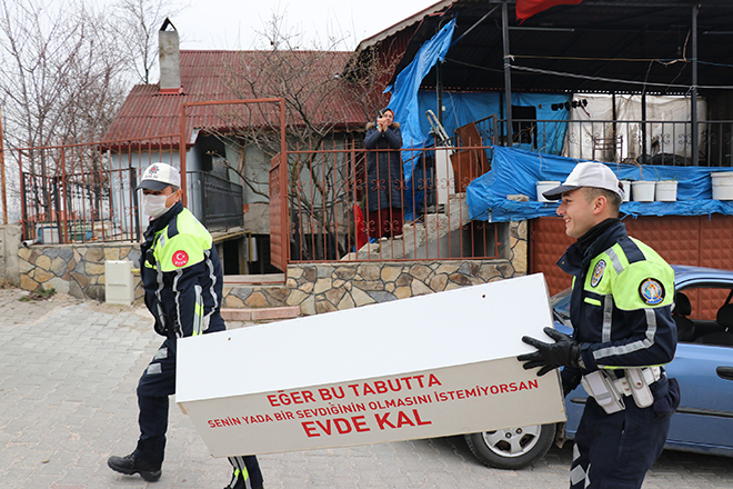 Bolu’da, korona virüs salgınına karşı 65 yaş ve üstü kişilerin evlerinden çıkmalarının yasaklanmasına rağmen bazı vatandaşların yasağa uymaması üzerine, Murat Çalık isimli vatandaş farkındalık oluşturmak istedi. Evinde hazırladığı bir tabutun üzerine ‘Eğer bu okunan sala senin yada bir sevdiğinin olmasını istemiyorsan evde kal” yazarak otomobilinin üzerine bağlayan Çalık, aracından sala sesini de açarak tabutla birlikte Bolu sokaklarında yaşlı vatandaşları uyardı.