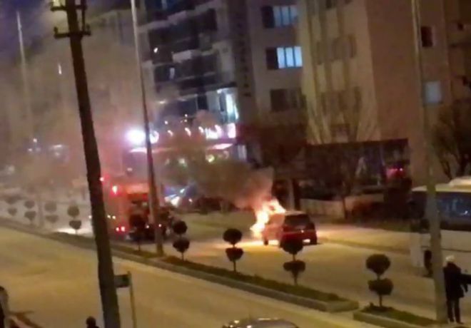 Olay, dün akşam saatlerinde Tepecik Mahallesi Hürriyet Caddesi'nde meydana geldi. Edinilen bilgiye göre, Muhittin U. idaresindeki 06 CGC 870 plakalı otomobil seyir halindeyken arıza yaptı. Muhittin U. aracını yol kenarına çektikten sonra yeniden çalıştırmaya çalıştığı sırada otomobilin motor kısmında patlama meydana geldi. Sürücünün büyük bir panikle araçtan çıktığı sırada otomobil alev alev yanmaya başladı. İhbar üzerine olay yerine itfaiye ekipleri sevk edildi. Ekiplerin müdahalesiyle söndürülen yangında otomobil kullanılamaz hale geldi. Otomobilin motorunda yaşanan patlama ve yangın güvenlik kameralarına yansıdı. Görüntülerde, araçta yaşanan patlamanın ardından çıkan yangın yer aldı.