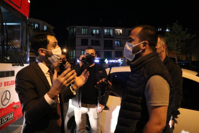 Bolu Belediyesi Basın ve Halkla İlişkiler Müdürü Ergin Yönet polis ekiplerine neden otobüsün önünün kesildiğini sordu. Ekipler ise, “Hıfzısıhha kanununa göre izinsiz olduğu için böyle bir etkinlik yapmanız yasak. Pandemide kimse hasta annesini ziyarete gidemezken ya da daha fazla sıkıntı çekerken sizin böyle dışarıda müzik yayını yapmanız doğru değil. Gerekli makamlar tarafından izinli olsa biz sizin güvenliğinizi almak için burada oluruz. Ama şu an sonlandırmak zorundayız” cevabını verdi.