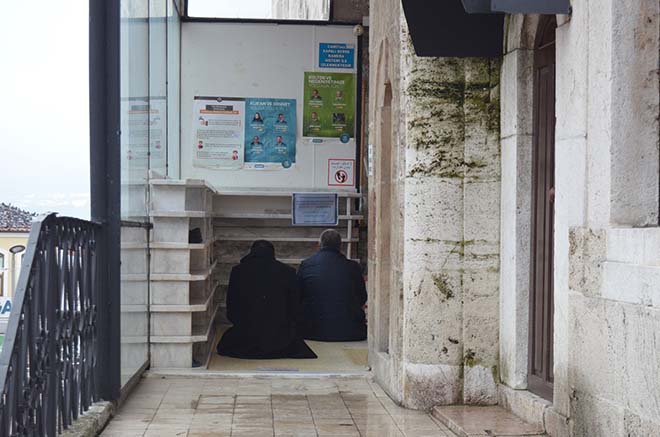 Korona virüse karşı alınan tedbirler kapsamında Diyanet İşleri Başkanlığı tarafından tüm Türkiye’de, camilerin Cuma günü ikindi namazına kadar kapalı olmasına karar verildi. Bolu’da ise 5 vatandaş, öğle ve Cuma namazını kılmak için geldiği Yıldırım Beyazıt Cami’nin kapalı olduğunu fark etti. Kapıdaki uyarıları okuduktan sonra caminin kapısına giden vatandaşlar, burada namazlarını kıldı. İbadetlerini tamamlayan vatandaşlar daha sonra da caminin önünden ayrıldı.