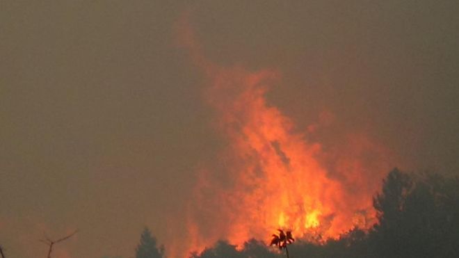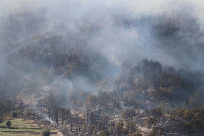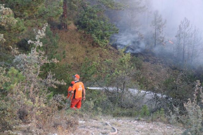 Bakan Yardımcısı Polat, yangına 118 arazöz, 7 iş makinesi, 9 helikopter ile müdahale edildiğini, helikopterin gün batımı itibariyle çalışmayı bıraktığını, gün doğumuyla birlikte yeniden göreve başlayacağını ifade etti. Polat, "Yangını zorlaştıran unsurlar var. Arazinin engebeli olması, karaçam ağırlıklı ağaç türüne sahip olması ve rüzgarın çok yönlü esmesiyle yangın yayılmıştır. Orman idaremiz, Valiliğimiz ve diğer kurumlarımızın katkılarıyla yapılan yoğun çalışmalarla yangın takip edilmekte ve etkili müdahale sürmektedir. Yangının sabaha kadar süreceği tahmin edilmektedir. Çok geçmiş olsun" diye konuştu.