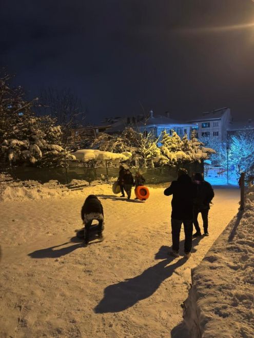 Okulların tatil olmasını fırsat bilen çocuklar, gece geç saatlere kadar yokuş ve eğimli sokaklarda şambrellerle kayarak karın keyfini çıkardı. Onlarca çocuğun bir araya gelerek doyasıya eğlendiği anlara aileler de eşlik etti. Soğuk havaya aldırış etmeyen çocuklar, gecenin ilerleyen saatlerine kadar eğlencelerine devam etti.