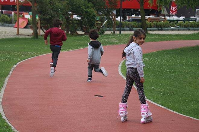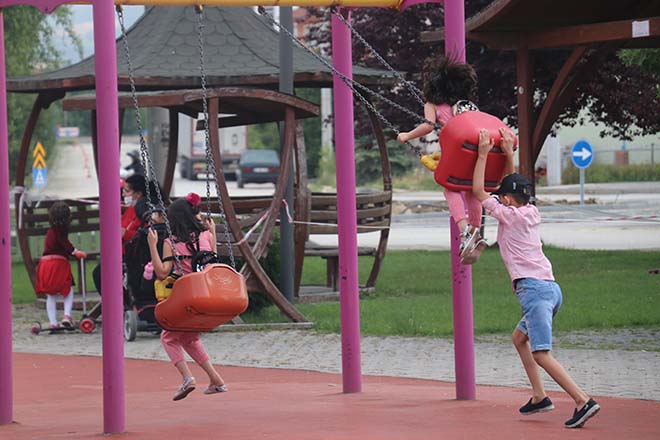 Bolu’da korona virüs tedbirleri kapsamında haftada bir gün saat 11.00 ile 15.00 arasında sokağa çıkmalarına izin verilen çocuklar aileleriyle birlikte parkları doldurdu. Hava sıcaklığı düşmesine rağmen evlerinde durmak istemeyen çocuklar, parklarda doyasıya eğlendi.