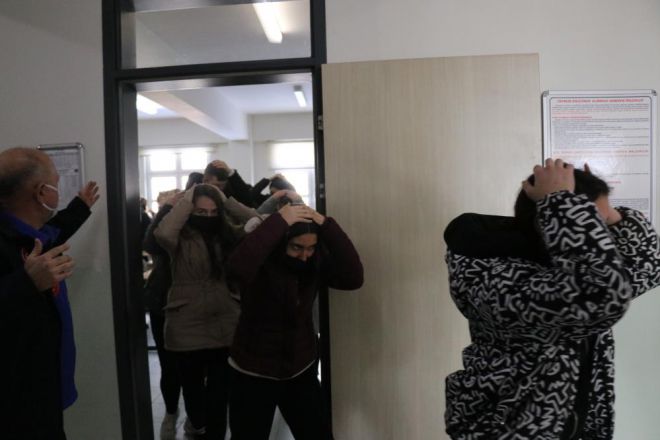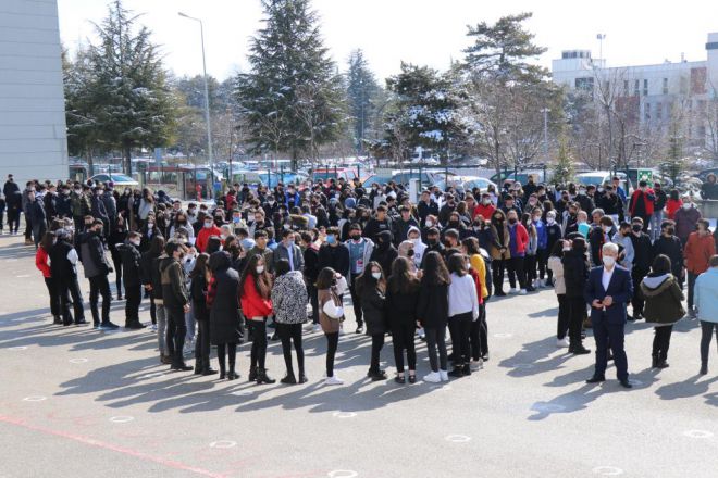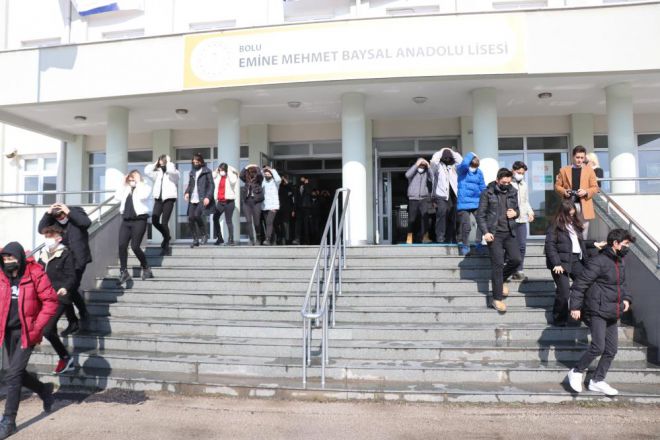 Kültür Mahallesi’nde bulunan Emine-Mehmet Baysal Anadolu Lisesi’nde Bolu Valisi Ahmet Ümit ve kurum müdürlerinin katıldığı tatbikatı öncesinde AFAD Müdürü Cengiz Çavuş’un deprem anında yapılması gerekenleri anlattı. Ardından sirenlerin çalmasıyla birlikte öğrenciler "çök, kapan, tutun" hareketlerini yaparak sirenin bitmesini bekledi. Sirenlerin bitmesinin ardından öğrenciler kontrollü olarak okuldan dışarı çıkarıldı. Tatbikat, öğrenciler isimleri okunarak kontrol edildikten sonra tamamlandı.