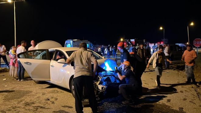 Kaza, saat 21.30 sıralarında D-100 karayolu Elmalık köyü mevkiinde meydana geldi. Edinilen bilgiye göre, İstanbul istikametine seyreden Z.K. idaresindeki 81 ACR 984 plakalı Opel marka otomobil, dönel kavşakta aniden yola çıkan M.Y. yönetimindeki 81 ES 173 plakalı Fiat marka otomobille çarpıştı. Meydana gelen kazada 4 kişi yaralandı. Diğer sürücülerin ihbarı üzerine bölgeye sağlık, polis, jandarma ve itfaiye ekipleri sevk edildi. İtfaiye ekipleri, araçta sıkışan bir yaralıyı kısa sürede araçtan çıkararak sağlık ekiplerine teslim etti. Kazada yaralanan vatandaşlar hastanelere sevk edildi. Kağıt gibi ezilen aracın sürücüsü M.Y.'nin daha önce alkollü araç kullanmaktan ehliyetine el konulduğu öğrenildi. Tali yoldan dönel kavşağa giren M.Y. yönetimindeki otomobilin aniden yola çıktığı anlar ise saniye saniye bir binanın güvenlik kamerasına yansıdı. Kazayla ilgili inceleme başlatıldı.