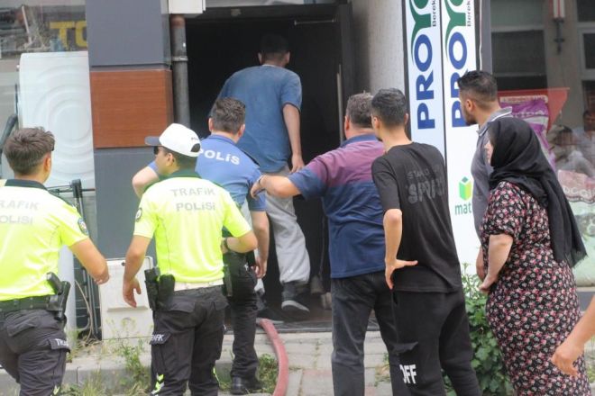 Öte yandan, dumanlar arasında kalan ve apartmanın üst katlarında bulunan 2’si çocuk 4 kişinin ailesi apartmanın kapısında bekledi. Apartman içerisindeki yakınlarının kurtarılmasını bekleyen Irak uyruklu şahıslar, duman dolu apartmana girmeye çalıştı. Ekipler tarafından engel olunan şahısların yakınlarına itfaiye ekipleri ulaştı. Yabancı uyruklu şahıslar, yakınlarıyla ilk teması itfaiye telsiziyle kurdu.
