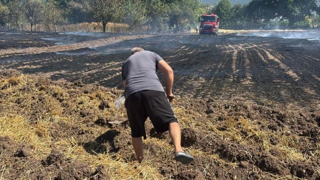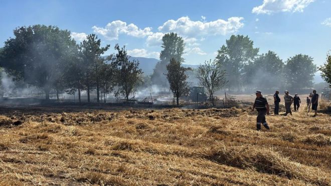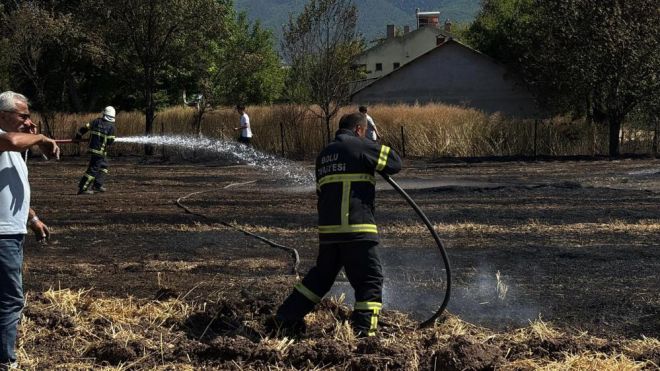 Evinin yakınına kadar alevlerin geldiğini belirten Bülent Özcan, "Yangın evin karşısında bulunan tarladan geldi. Alevler birden geldi. Rüzgarla birlikte. Çok hızlı yayıldı. Rüzgar ters esti o da biraz yavaşlattı sonradan. Evlere sıçramadan kontrol altına alındı" dedi.