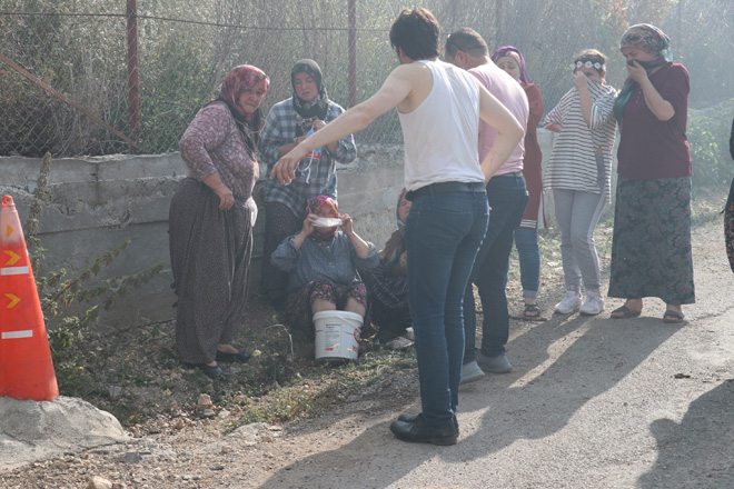 Yangını kendi imkanlarıyla söndürmek isteyen Hatice Bayram’ın (70) alevler arasında kalan ayakları yandı. Oğlu ve gelininin yardımıyla alevlerin arasından kurtarılan yaşlı kadın, yangının yaşandığı bölgeden çıkarıldı. Ayakları kovaya konulan suyun içine sokulan yaşlı kadın, olay yerine gelen 112 Sağlık ekiplerinin ilk müdahalesinin ardından tedavisi için hastaneye götürüldü.