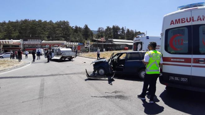 Kaza, Mudurnu ilçesinin girişindeki dönel kavşakta meydana geldi. Edinilen bilgiye göre, Yasin K. idaresindeki 14 LB 781 plakalı süt kamyonu ile Mehmet A. yönetimindeki 54 TA 130 plakalı otomobil kavşakta çarpıştı. Kazada otomobil sürücüsü Mehmet A. ile yolcu konumunda bulunan Mehmet K. yaralandı. İhbar üzerine olay yerine sağlık ve polis ekipleri sevk edildi. Yaralılar, olay yerindeki ilk müdahalelerinin ardından Bolu Abant İzzet Baysal Devlet Hastanesi’ne kaldırıldı.