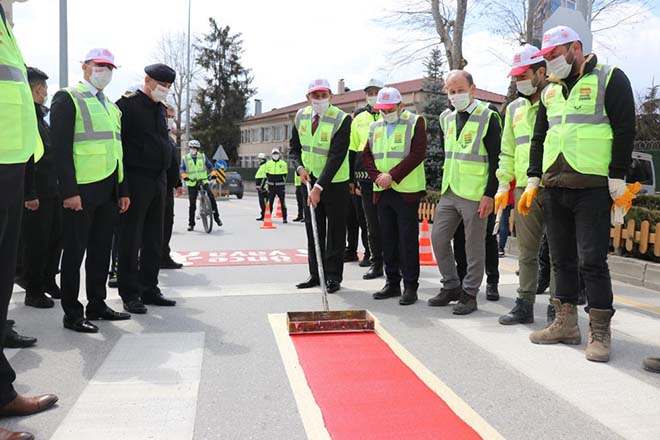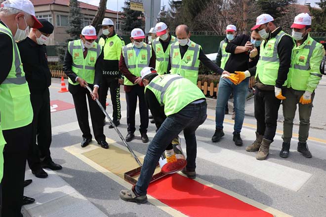 Bolu’da, İçişleri Bakanlığı tarafından alınan karar gereği “Yaya önceliği kırmızı çizgimizdir” etkinliği düzenledi. Etkinlik kapsamında kent merkezindeki yaya geçitlerine yaya önceliğini belirten kırmızı çizgiler çizildi.