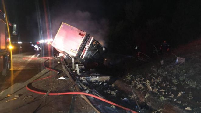 Olay, saat 23.45 sıralarında TEM Otoyolu'nun Rüzgarlar köyü mevkiinde meydana geldi. Edinilen bilgiye göre, A. H. U. yönetimindeki 06 DNK 478 plakalı tır, seyir halindeyken sürücüsünün direksiyon hakimiyetini kaybetmesi sonucu yolun sağ şeridindeki demir bariyerlere çarparak şarampole devrildi. Çarpmanın etkisiyle tırın dorse kısmı bir anda alev aldı. Kısa sürede olay yerine gelen itfaiye ekipleri yangına müdahale etti. Alev topuna dönen araçta çıkan yangın kontrol altına alınarak söndürüldü.