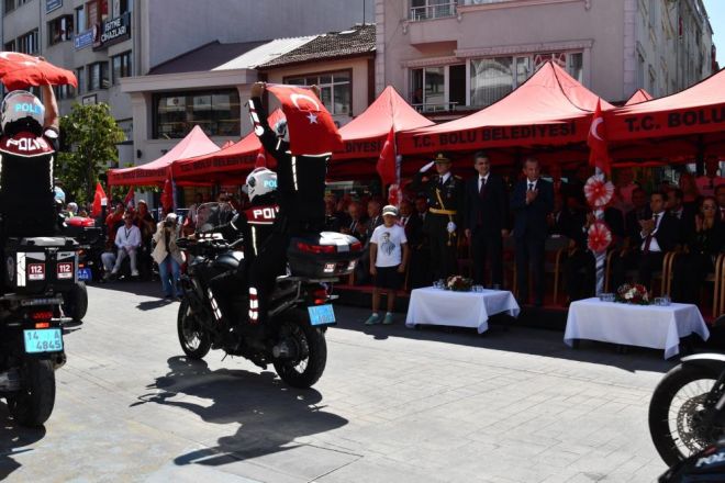 Bolu’da 30 Ağustos Zafer Bayramı’nın 103’üncü yıldönümü, Anıtpark’taki Atatürk anıtına çelenk bırakılmasıyla başladı. Ardından Valilik Meydanı’nda devam eden kutlamalarda, öğrenciler şiirler okudu, folklor ekibinin gösterisi ve mehteran takımı ilgiyle izlendi. Ayrıca, Mudurnu ilçesinde de Zafer Bayramı coşkuyla kutlandı. İlçe halkının yoğun katılım gösterdiği etkinlikler, renkli görüntülere sahne oldu.