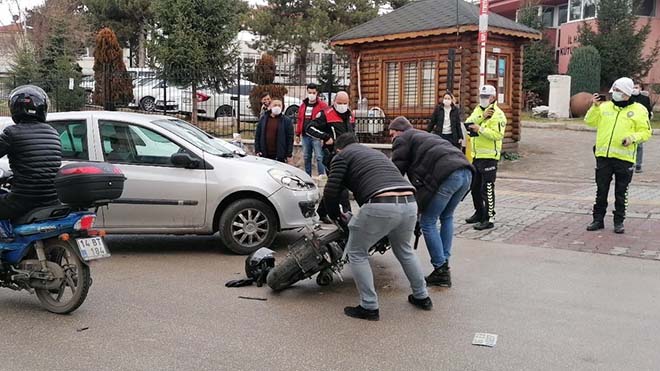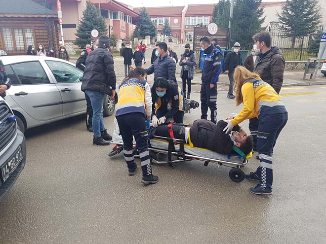 Kaza, Karamanlı mahallesi Stadyum caddesinde meydana geldi. Edinilen bilgiye göre, Stadyum caddesi istikametine seyir halinde olan A.D. idaresindeki 06 EB 0657 plakalı motosiklet, karşı yönden geldiği sırada ani dönüş yapan G.Ü. idaresindeki 14 DR 930 plakalı otomobille çarpıştı. Çarpışmanın etkisiyle motosikletten fırlayan sürücü otomobilin ön camına çarptıktan sonra yere düşerek yaralandı. İhbar üzerine olay yerine 112 Sağlık ve polis ekipleri sevk edildi. Yaralı motosiklet sürücüsü olay yerinde yapılan ilk müdahalesinin ardından İzzet Baysal Devlet Hastanesi Köroğlu Ünitesi Acil Servisi’ne götürüldü. Yaralı sürücünün hayati tehlikesinin bulunmadığı öğrenildi.