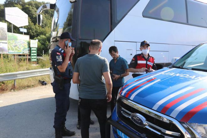 Ormanlık alanda saklanan göçmenler polis ve jandarma ekiplerini görünce hızla kaçmaya başladı. 'Dur' ihtarlarına uymayan göçmenleri dakikalarca kovalayan ekipler 3 kişiyi boş bir tarlada yakaladı. Olay yerine istenen takviye ekiplerinin arama çalışmaları sonunda toplam 16 Pakistan uyruklu göçmen yakalandı. Göçmenler ve gözaltına alınan otobüs sürücüsü ifadeleri alınmak üzere jandarma komutanlığına götürüldü.