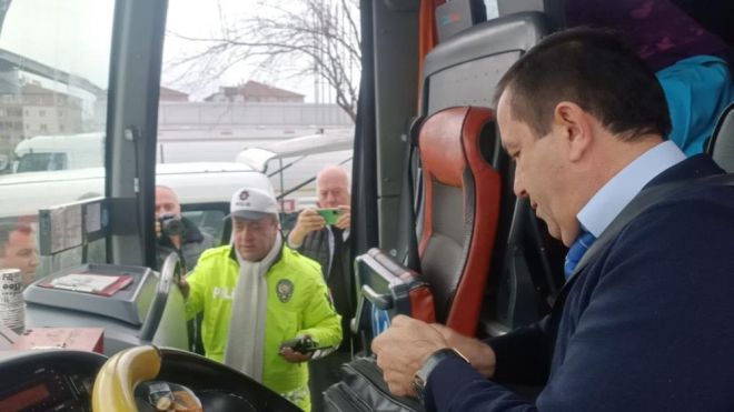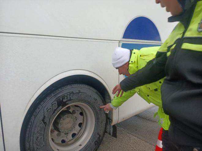 Bolu İl Emniyet Müdürlüğü Trafik Tescil ve Denetleme Şube Müdürlüğü ekipleri, Şehirlerarası Otobüs Terminali’nde yolcu otobüslerine yönelik denetim yaptı. Terminal çıkışına kurulan uygulama noktasında durdurulan araçların lastikleri ekipler tarafından lastik derinlik ölçme kumpasıyla ölçüldü. Ayrıca yolcuların emniyet kemerleri ve sürücülerin belgeleri denetlendi. 1 Ocak 2024 tarihinde yürürlüğe giren ‘Ulaştırma Elektronik Takip ve Denetim Sistemi’nin (U-ETDS) yolcuların daha rahat ve güvenli yolculuk yapması için önemli olduğunu vurgulayan otobüs şoförü Remzi Arabacı, "Bu sistem sayesinde araçlar uydudan takip ediliyor. Uydudan bakıldığında araçların ne kadar hız yapıp yapmadığı görülüyor. Yolcular daha rahat ve güvenli yolculuk yapıyor" dedi. Otobüste yolculuk yapan Haluk Ertan ise "Güzel uygulama, devam ettirilmeli" diye konuştu.