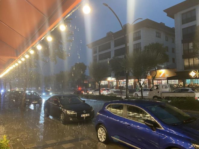 Bolu’da akşam saatlerinde sağanak yağış etkili oldu. Aniden bastıran kuvvetli sağanak nedeniyle kent genelinde hayat olumsuz etkilendi. Yağmura hazırlıksız yakalanan vatandaşlar ıslanmamak için saçak altlarında bekledi. Yol kenarlarında yer yer su birikintileri oluştu. Yarım saatlik sürede birçok ara sokak göle döndü.