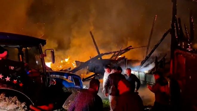 Yangın, Mudurnu ilçesine bağlı Göncek köyünde akşam saatlerinde meydana geldi. Edinilen bilgiye göre, kent genelinde güneşli olan hava akşam saatlerinde yerini sağanağa bıraktı. Şehir merkezinde ve ilçelerde yağışla birlikte bölgede şimşek ve yıldırım düşmeleri etkili oldu. Göncek köyünde Kamil Kocaağa'ya ait samanlığa yıldırım düştü. Yıldırım düşmesi sonucunda samanlıkta yangın başladı. Kısa sürede rüzgarın da etkisiyle alevler kısa sürede samanlığı sardı. Yangını fark eden köy sakinleri durumu 112 Acil Çağrı Merkezi'ne bildirdi. İhbar üzerine olay yerine itfaiye, sağlık ve jandarma ekipleri sevk edildi. Kısa sürede bölgeye ulaşan ekipler yangına müdahale ederek alevleri kontrol altına aldı. Yangında samanlık küle dönerken, samanlığın yanında bulunan traktör de yanarak hurda yığınına döndü.