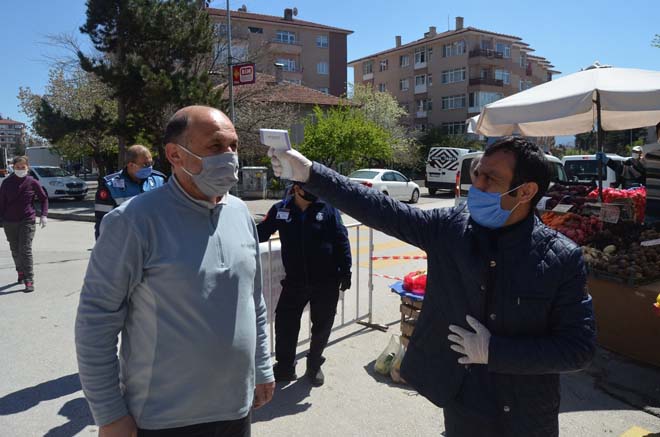 Bolu’da, korona virüs tedbirleri kapsamında pazar esnafı kendi önlemlerini alıyor. Bolu Manav ve Pazarcılar Odası tarafından alınan karar doğrultusunda esnaflar, açtıkları tezgahların arasına 3’er metrelik mesafe bırakıyor. Pazar alanlarında Bolu Belediyesi Zabıta Müdürlüğü ekipleri ve oda yetkilileri tarafından esnafların sık sık ateş ölçümleri yapılıyor. Alınan önlemler hakkında bilgi veren Bolu Manav ve Pazarcılar Odası Başkanı Mustafa Altındal, “Oda olarak biz gerekli tedbirleri her geçen gün almaya devam ediyoruz. Vatandaşlarımızın sağlığı bizim için her şeyden önemli. Esnafımız, açtıkları tezgahların arasına 3 metrelik boşluk bırakarak sosyal mesafe kuralına uyuyor. Öte yandan sürekli olarak ateş ölçümleri yapılıyor. Bununla beraber hiçbir esnafımız eldiven ve maskesiz çalışmıyor. Pazar girişlerinde de gelen vatandaşlarımıza dezenfektan sıkıyoruz ve maske veriyoruz” ifadelerini kullandı.