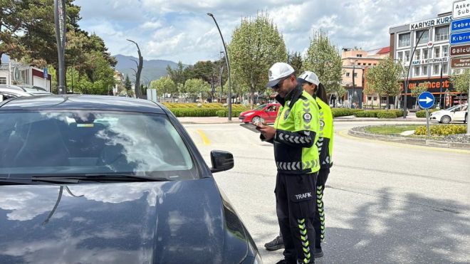 Bolu'da gün içerisinde en yoğun kullanılan kavşaklardan biri olan Anıtpark Kavşağı'nda Bolu İl Emniyet Müdürlüğü Trafik Tescil ve Denetleme Şube Müdürlüğü ekipleri ihbarlı trafik denetimi yaptı. Ekipler tarafından yapılan denetimde, sinyal vermeden dönüş yapan araçlar tek tek tespit edildi. Telsizden araç plakalarının söylenmesiyle kural ihlali yapan araçlar 100 metre ileride trafik ekipleri tarafından durduruldu. Yapılan denetimlerde toplam 22 araca, sinyal vermeme kuralını ihlal ettikleri gerekçesiyle 21 bin 846 TL para cezası kesildi.