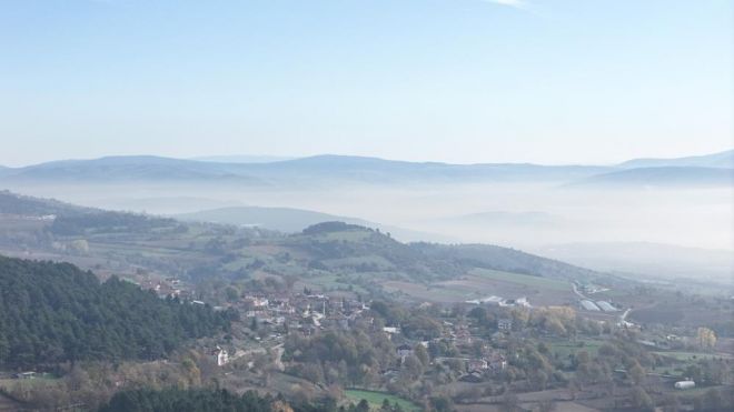 Bolu'da sabah saatlerinde etkili olan yoğun sis, şehir merkezini tamamen kaplarken, yüksek noktalardan bakıldığında bulutların üzerinde kalmış bir şehir manzarası oluştu. Havadan dron ile kaydedilen görüntülerde, sis tabakasının arasında kalan binalar ve ormanlar kartpostallık kareler oluşturdu.