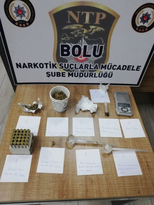 Edinilen bilgiye göre, İl Emniyet Müdürlüğü Narkotik Suçlarla Mücadele Şube Müdürlüğü ekipleri, TEM otoyolu üzerinde yapılan uygulama sırasında İstanbul istikametine seyir halinde olan bir otomobili durdurdu. Araçta bulunan sürücü Muhammet Şipal (36) ve Kürşat Şipal’in (41) hareketlerinden şüphelenen ekipler, şahıslar ve araçta arama yaptı. Narkotik köpeği ile yapılan aramalarda şahısların üzerinde, aracın çeşitli yerlerinde ve oyuncak plastik süs köpeği içerisine gizlenmiş 19,55 gram skunk, 3,12 gram metamfetamin, 26 adet fişek ve 2 adet metamfetamin içiminde kullanılan cam aparat ele geçirildi.