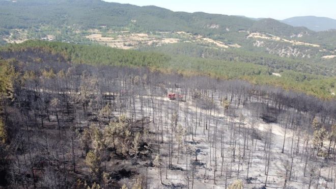 Öte yandan, kolluk kuvvetlerinin yaptığı incelemede yangının, tarlada çalışma sırasında biçerdöverden sıçrayan kıvılcımlar nedeniyle çıktığı belirlendi. Olayla ilgili 2 şüpheli gözaltına alındı. Şüphelilerin sorgusunun devam ettiği öğrenildi.