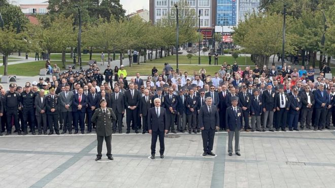 Program, kurumların Atatürk Anıtı'na çelenk sunmasıyla başladı. Atatürk Anıtı'na çelenk sunumunun ardından Saygı duruşunda bulunulup İstiklal Marşı okundu. Günün anlam ve önemine ilişkin Türkiye Muharip Gaziler Derneği Bolu Şubesi Başkanı İbrahim Çelik konuşma yaptı.
