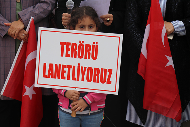 Bolu’da, sivil toplum kuruluşlarının kadın temsilcileri, Diyarbakır’da çocukları terör örgütü tarafından kaçırılan annelerin nöbetine destek olmak için bir araya geldi. Demokrasi Meydanı’nda ellerinde pankartlar ve Türk bayraklarıyla toplanan kadınlar, Diyarbakır’daki annelerin mücadelesine destek olmaya devam edeceklerini söylediler. Grup adına basın açıklaması yapan Hacer Aşık, annelerin direnişinin teröre en büyük darbeyi vuracak iradeyi ortaya koyduğuna inandıklarını belirterek, “Tarih Diyarbakır’daki anneleri ve teröre meydan okuyan direnişlerini saygıyla yazacaktır. Bulundukları şehirlerde siyasi ve toplumsal yalnızlaştırılmayı göze alarak evlatlarının geriye dönmesini isteyen anneler başka canlar çıkmasın diye çıktıkları bu yolda inşallah zafere ulaşacaklardır. Günlerdir yaşanan evlat nöbetlerinde tarifi imkansız acılara şahit oluyoruz. Evladımın ölüsüne bile razıyım diyen annelerin masum ve insani direnişinin yanında olmak hepimizin boynunun borcudur” dedi.