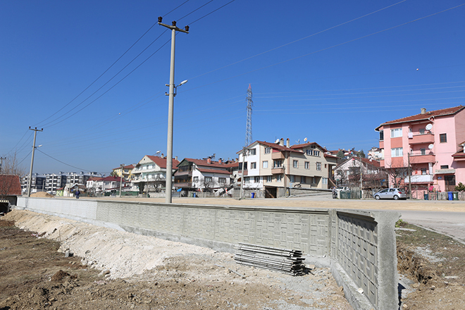 Bolu Belediye Başkanı Tanju Özcan’ın seçim vaatlerinden olan, Sulama Kanalı Kapatma Projesi’nin ilk etap çalışmaları tüm hızıyla devam ediyor. Kanalın 2,9 kilometrelik kısmı Fen İşleri Müdürlüğü ekipleri tarafından belediyenin kendi üretimi olan büzler yerleştirdikten sonra üzeri toprakla kapatıldı. Kalan 5 kilometrelik kısmı da bu yıl tamamlamayı planlayan ekipler, toplam uzunluğu 8 kilometre olan kanal yolunu, yürüyüş ve bisiklet yollarının olduğu yeşil alan olarak projelendirecek. Bu kapsamda Fen İşleri Müdürlüğü ekiplerince Sağlık Mahallesi kapalı semt pazarı yakınlarındaki bölgenin genişletilmesi amacıyla 100 metre uzunluğunda büyük bir duvar inşa edildi.