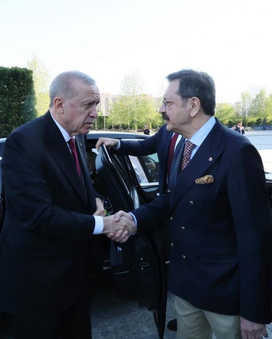 Küresel ekonomi ve siyasetin artan belirsizliklerden dolayı sancılı bir süreçten geçtiğini ifade eden Hisarcıklıoğlu, "Küresel ekonomi ve siyaset, artan belirsizliklerin getirdiği sancılı bir süreçten geçiyor. Dünya çapında güç yapılanması, yeniden şekilleniyor. Tüm bu değişen ve dönüşen ortamda Türkiye, sizin liderliğinizde aktif bir şekilde yer alıyor. Karabağ’da, Libya’da, Suriye’de, Gazze’de, Pakistan’da ve Ukrayna ile Rusya’nın İstanbul’da bir araya gelmesinde, Türkiye’nin artan küresel ağırlığı net bir şekilde görülüyor. Milletimizin kadim mazisine yakışan şekilde özgüvenimizi bize kazandırdığınız için, şahsım ve camiam adına size en kalbi şükranlarımızı sunuyoruz. Son dönemde olumlu gelişmelerin yaşandığı terörsüz Türkiye sürecinin de hayırla sonuçlanmasını ümit ediyoruz. Bu süreçteki liderliğiniz için en başta size, sürece destek veren tüm siyasi partilerimize ayrıca teşekkür ediyoruz" diye konuştu.