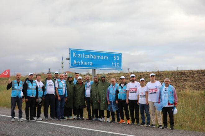 Memur-Sen'e bağlı Büro Memur-Sen, Enerji Bir-Sen ve Ulaştırma Memur-Sen'in Bolu'dan Ankara'ya başlattıkları yürüyüş devam ediyor. Zaman zaman yağmur altında devam eden yürüyüşle ilgili açıklama yapan Büro Memur-Sen Genel Başkanı Yusuf Yazgan, başlattıkları eylem sürecinin dördüncü aşamasında olduklarını hatırlatarak, yürüyüşlerini Ankara'da büyük bir kalabalık eşliğinde gerçekleşeceğini ve basın açıklaması ile bitireceklerini söyledi.
