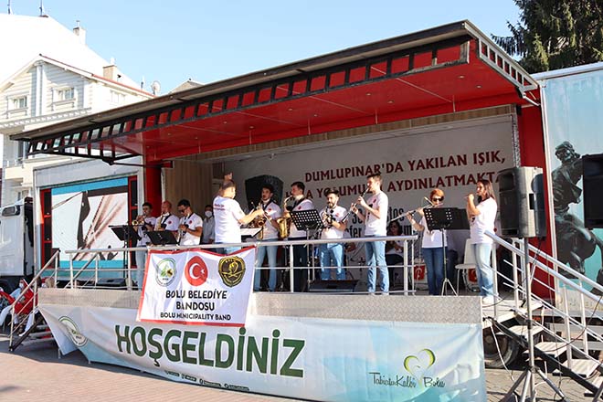 Bolu’da 30 Ağustos Zafer Bayramı’nın 98’inci yılı dolayısıyla bando gösterisi ve kortej yürüyüşü düzenlendi. Bolu Belediyesi’nin koronavirüs tedbirlerine dikkat ederek düzenlediği kutlama etkinlikleri valilik önünde bando konseri ile başladı. Etkinliğe Bolu Belediye Başkanı Tanju Özcan, eşi Meral Özcan, belediye meclis üyeleri ve vatandaşlar katıldı. Ayrıca belediye ekipleri tarafından vatandaşlara da 10 bin adet Türk bayrağı dağıtıldı.