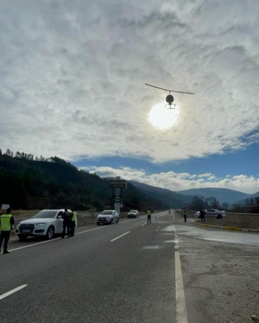 Edinilen bilgiye göre, İl Jandarma Komutanlığı’na bağlı Trafik Şube ve Asayiş Şube Müdürlüğü ekipleri Mengen ilçesi sınırlarında bulunan D-750 kara yolunda trafik denetimi gerçekleştirdi. Ankara ile Zonguldak’ı birbirine bağlayan yolda, cayrokopter destekli geniş çerçeveli uygulama yapıldı. Yüksek teknolojiye sahip hava aracı cayrokopterde bulunan kamera sistemi tarafından D-750 kara yolunda seyreden, emniyet kemeri takmayan, cep telefonu ile araç kullanan ve trafik işaret levhalarına uymayan sürücüler tespit edildi.Seyir halindeyken cep telefonu ile konuşan 3, trafik işaret levhalarına uymayan 3 ve emniyet kemeri takmayan 6 olmak üzere toplam 12 sürücüye 10 bin 728 lira para cezası uygulandı.