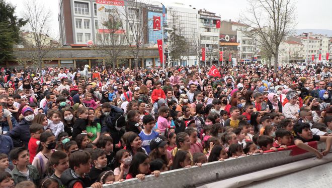 23 Nisan Ulusal Egemenlik ve Çocuk Bayramı Bolu’da dolu dolu yaşandı. Bolu Belediyesi Kültür ve Sosyal İşler Müdürlüğü tarafından Kent Meydanı’nda gerçekleştirilen yüz boyama, çocuk tiyatrosu ve sihirbaz gösterisi ile alanda bulunan binlerce çocuk doyasıya eğlendi. Etkinliklerin sonunda Bolu Belediyesi Kültür ve Sosyal İşler Müdürü Güler Mert, tiyatroculara ve sihirbaz gösterisini gerçekleştiren Serkan Yazıcı’ya teşekkür plaketi takdim etti. Ayrıca etkinlik boyunca alanda bulunan çocuklara ve ailelerine 5 bin balon ve bayrak dağıtımı gerçekleştirildi. 23 Nisan Ulusal Egemenlik ve Çocuk Bayramı etkinlikleri, 24 Nisan 2022 Pazar günü Saat: 21.00’da Kent Meydanı’nda tiyatro gösterileri ve Hacivat Karagöz oyunu ile devam edecek.