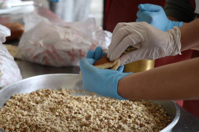 Kahramanmaraş’tan gelen ve o yörenin baklavasını yapan Servet Yörük, “Ben deprem yaşamadım. Çocuklarım yaşadı. 2 haftalığına başka bir yere ziyarete gelmiştim. 8 Şubat’tan bugüne kadar da hep buradayım. Maraş, genellikle baklava yapar. Biz Afşin yöremizde her zaman yaptığımız, çocuklarımız okuldan geldiğinde, misafirlerimize, gezmeye gittiğimiz yerlere yapar götürürüz” dedi.