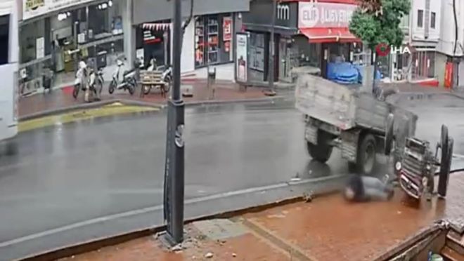 Traktörün devrildiği anlar saniye saniye güvenlik kamerasına da yansıdı. Görüntüde, traktörün kontrolden çıkarak direğe çarpması sonucu tepetaklak olduğu, Emre Çiftçi'nin ise aracın altında kaldığı anlar yer aldı.